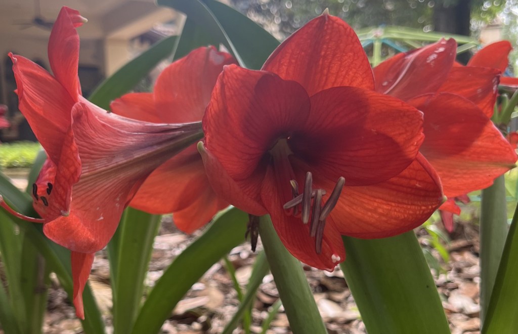 It’s a little late in the season here for Camellia blooms (zone 9), so please enjoy these photos of some of my Amaryllis that are currently loving this humid, wet weather.